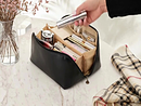 Kosmetyczka z ekoskóry, z uchwytem. Pojemne wnętrze z przegródkami gwarantuje łatwy dostęp i bezpieczne przechowywanie kosmetyków i akcesoriów. Praktyczna w podróży i na co dzień.